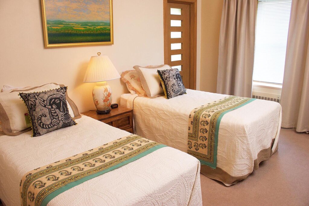 Deluxe Room is a comfortable and spacious accommodation designed to provide a relaxing stay during your retreat. The room features a private bathroom and your choice of two twin beds, one full bed, or one queen-sized bed.