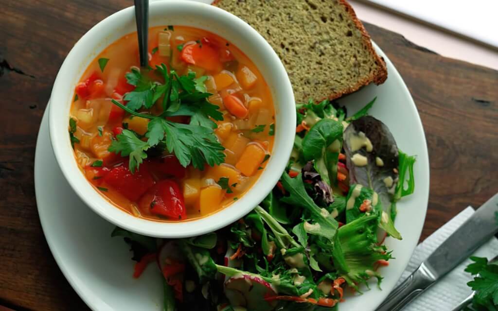 Three nourishing vegetarian meals per day.
